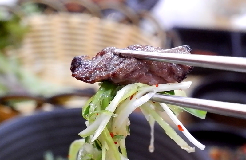 간장소스에 살짝 담가 먹으면 부드러우면서도 단짠단짠 쫀득쫀득한 갈빗살 맛이 좋습니다.