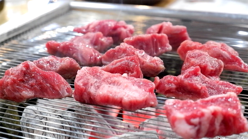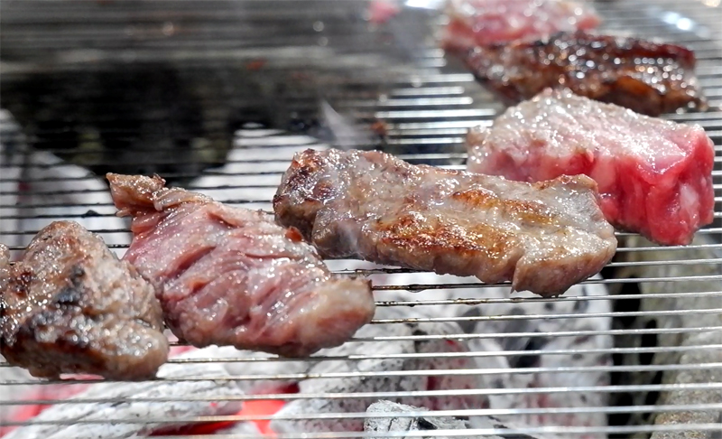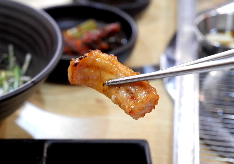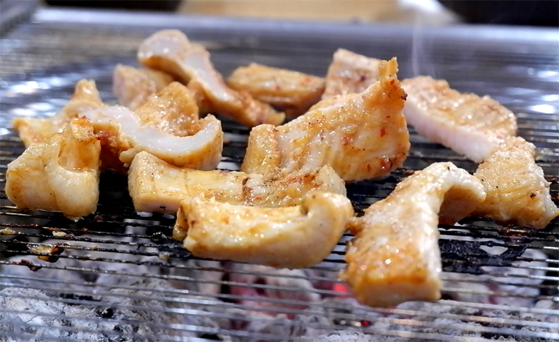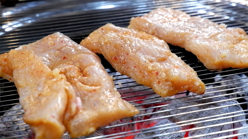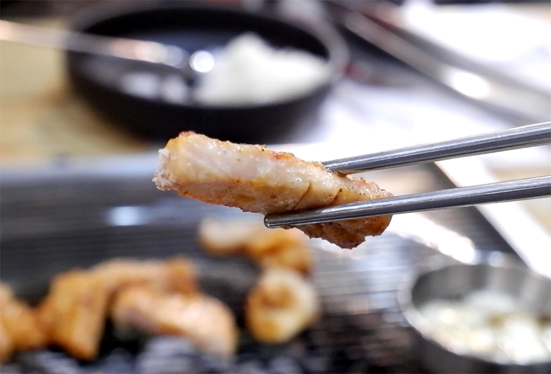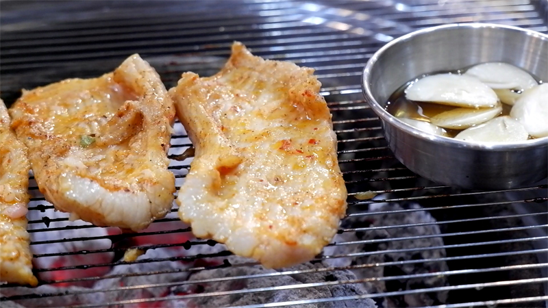고기가 기름결을 먹고 있어서 너무 안 익으면 생기름맛이 날 수 있습니다.