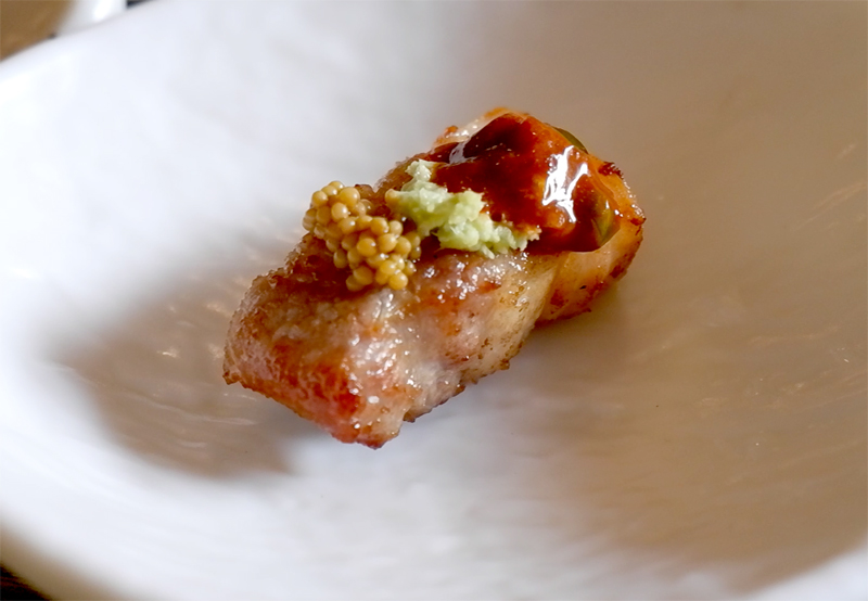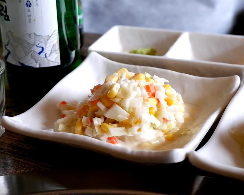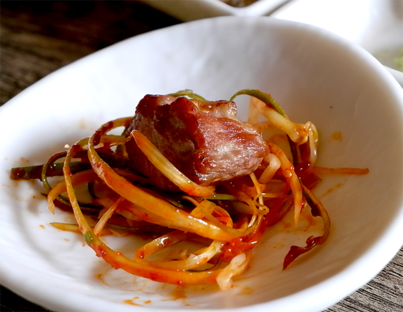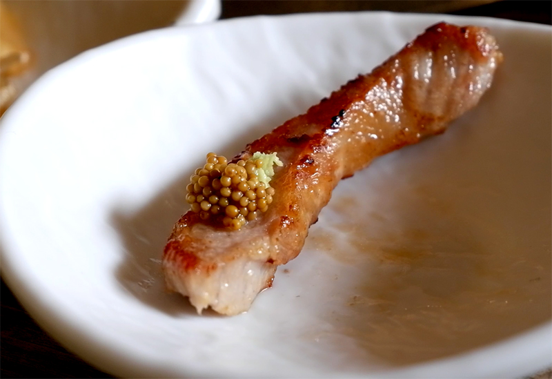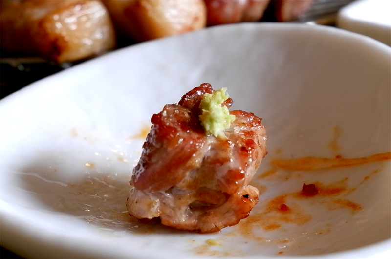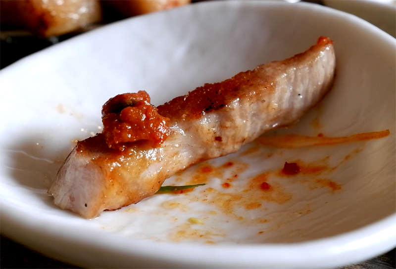 오돌토돌한 질감과 알싸한 고추냉이의 맛이 항정살의 고소함을 배가시킵니다.