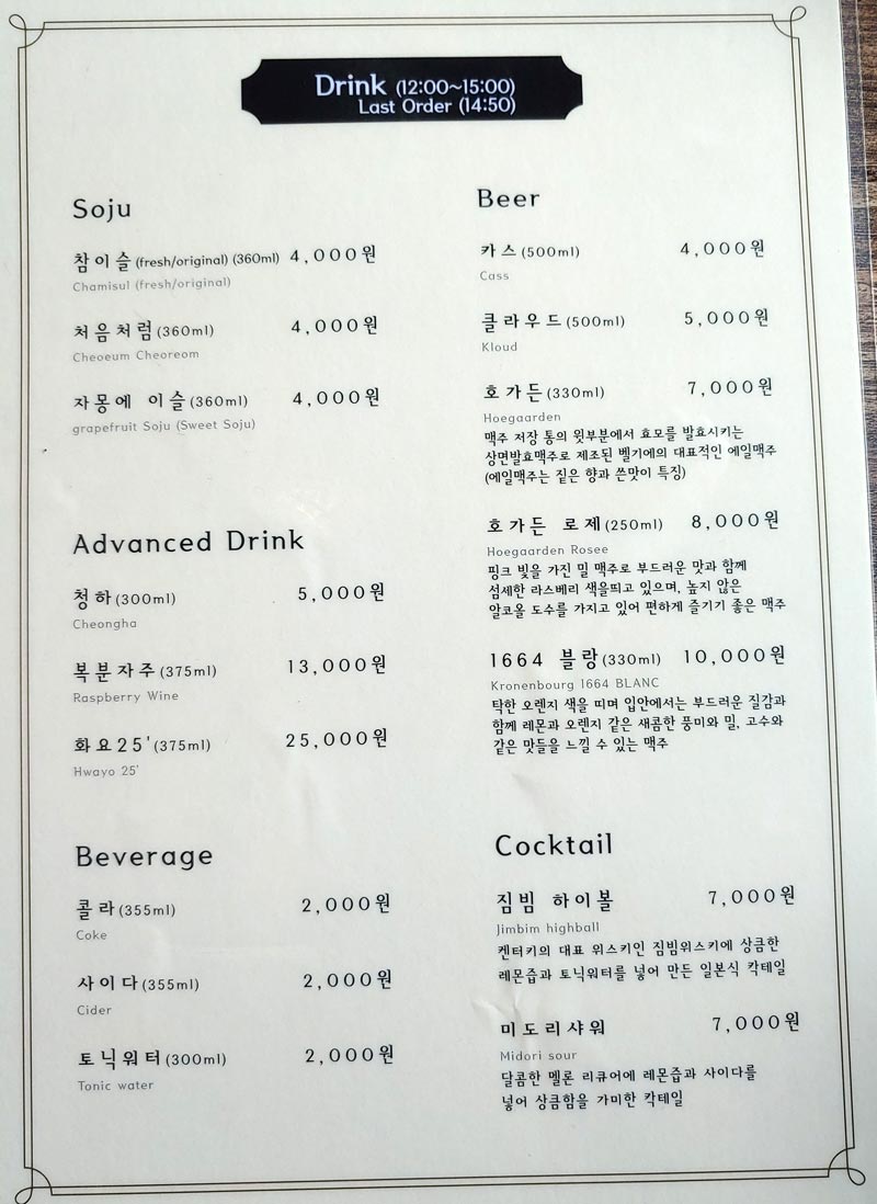 점심 시간을 위한 런치메뉴도 따로 준비되어 있으니 식사시간에 방문하여도 좋을 듯합니다.