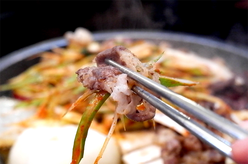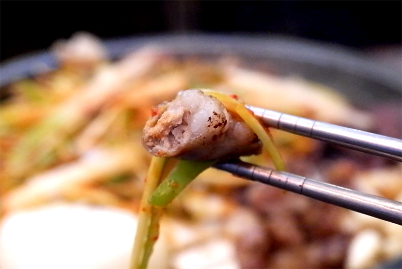 풍부한 소기름과 살코기 그리고 익은 양념 파절이의 맛이 조화롭게 섞이면서