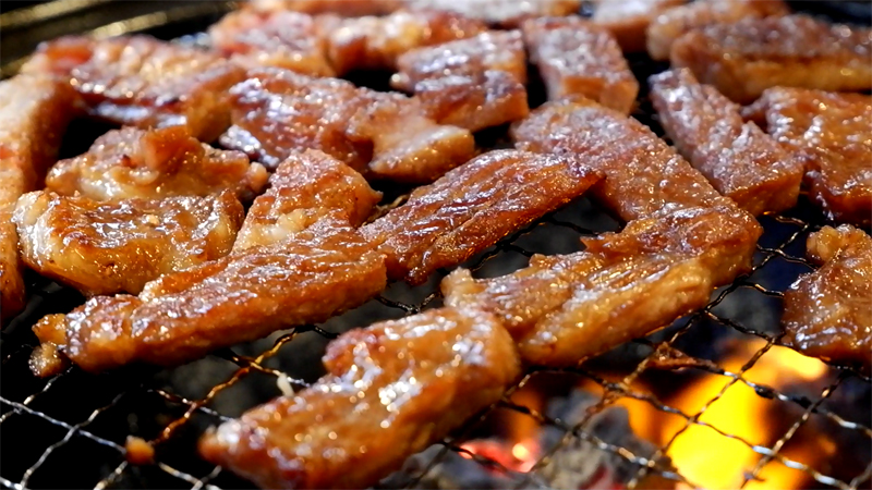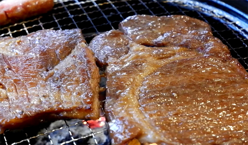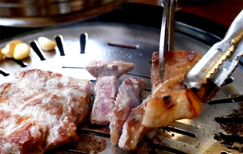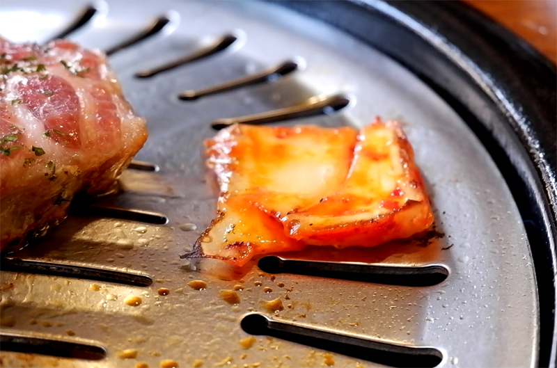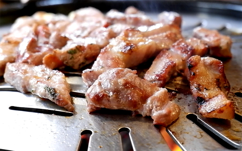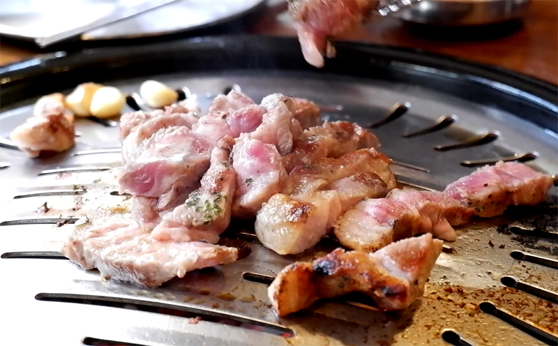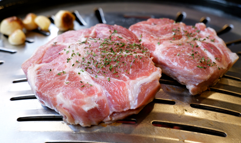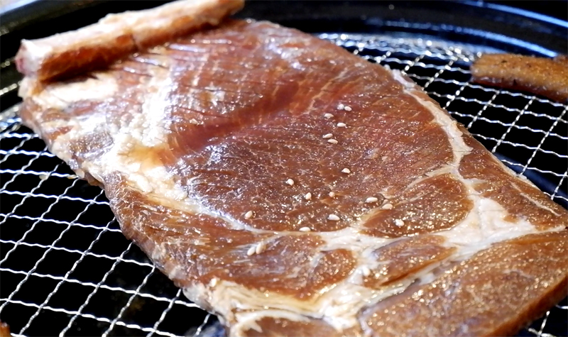 목살과 껍데기는 불판을 달리 하기에 먼저 목살을 굽습니다.