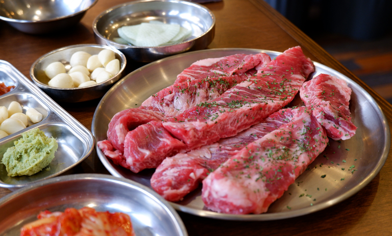 친구가 조금 늦어 먼저 소갈비살 2인분을 주문하였습니다.