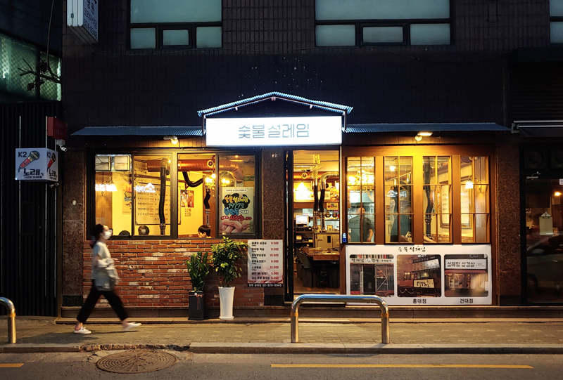 망원동 고기집 숯불설레임은 지하철 6호선 망원역에서 나와 망원시장을 지난 도로가에 있습니다.