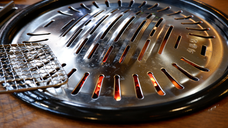 숯불 밑에는 가스불이 있어서 화력을 조절할 수 있습니다.
