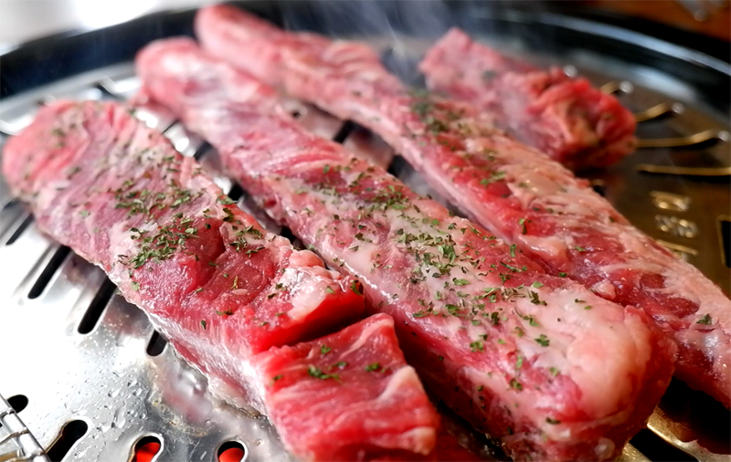 갈비살은 고기결이 있어 먹기에 좀 질깁니다.
