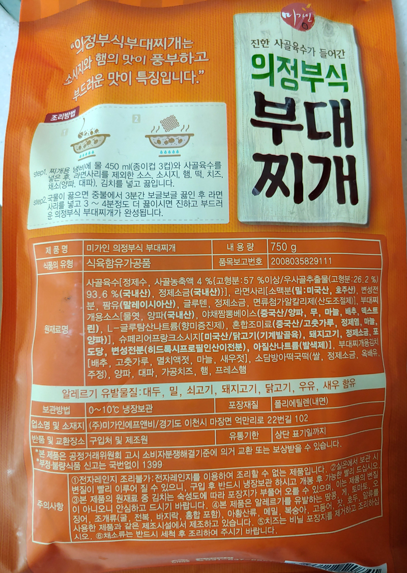 미가인 진한 사골육수가 들어간 의정부식 부대찌개입니다.