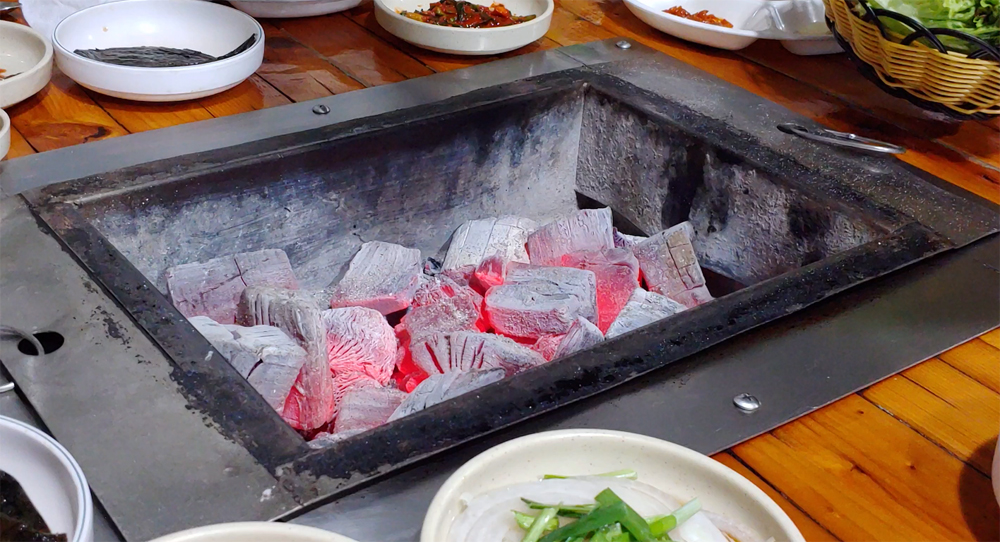 참숯이 올라오구요,