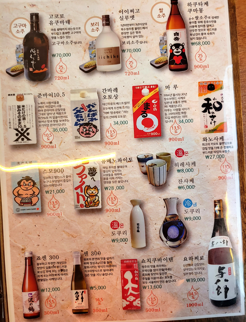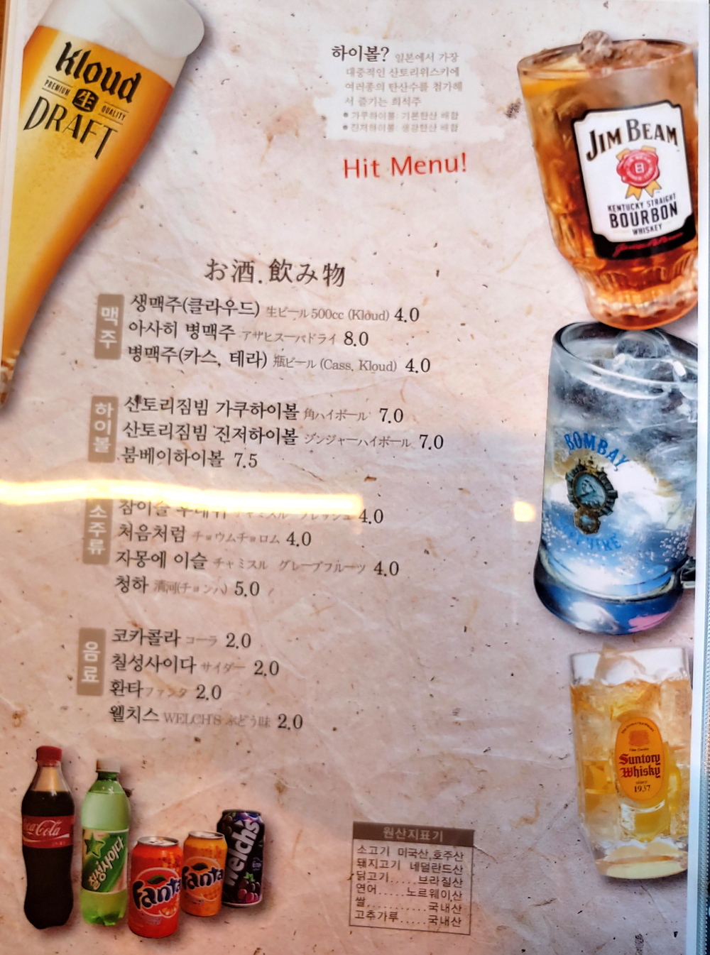 원흥 술집 이자카야 우마이센의 메뉴입니다.