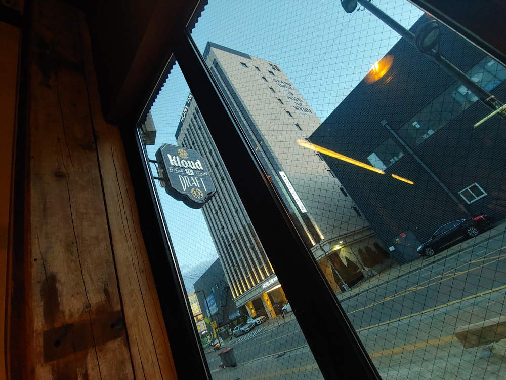 창밖엔 좁지 않은 도로와 하늘이 위로 터져 있어 답답하지 않고 좋네요~