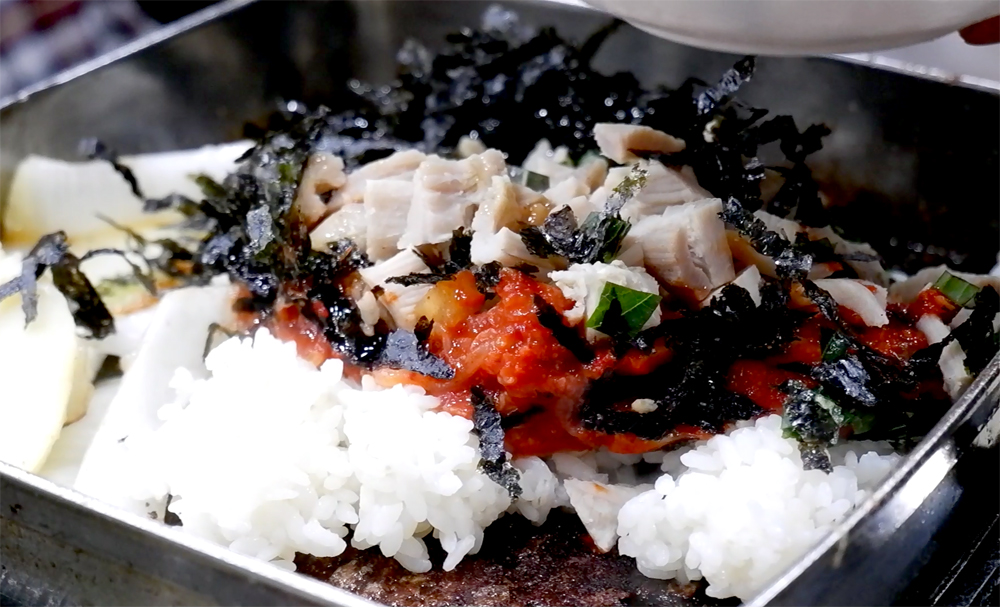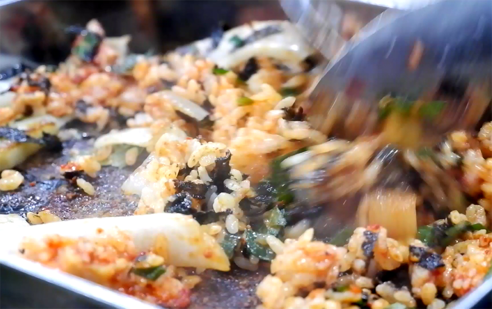 이모님의 쌍주걱 스킬로 맛좋게 비벼... 볶아지고 있습니다.