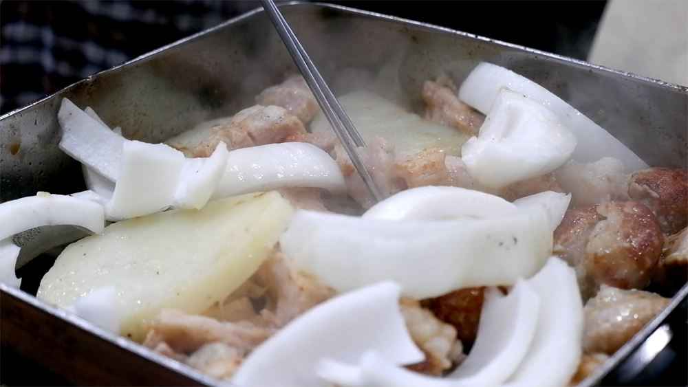 기름에 튀겨지듯 익은 감자도 구수하니 맛이 좋습니다.