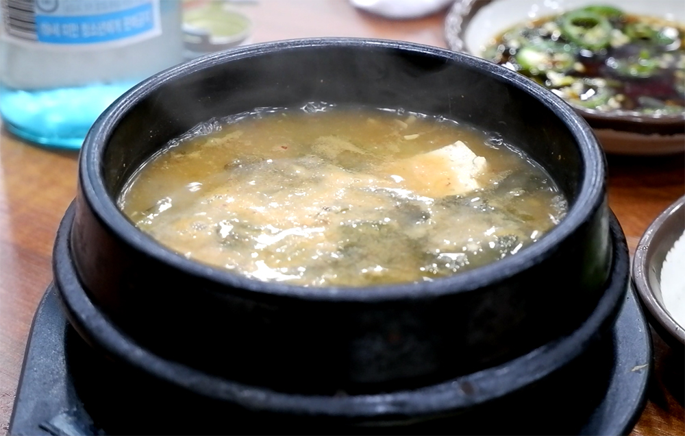 꽃게로 육수를 낸 된장찌개랍니다.