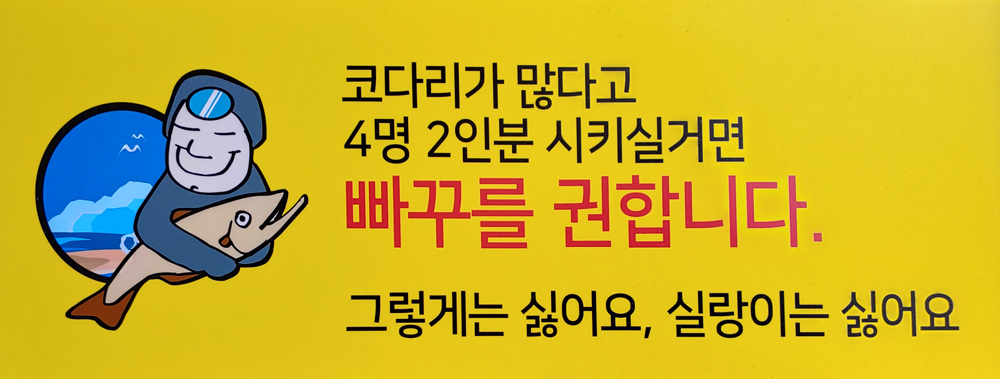 1, 2, 3, 4... 1인분이 2마리라니... 아주 훌륭합니다.