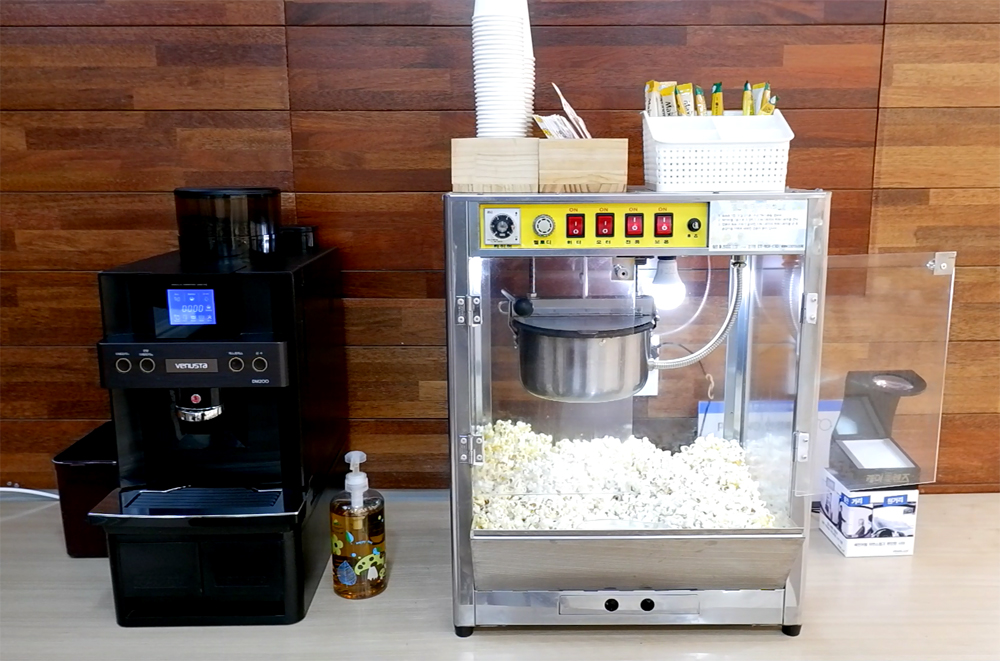 그리고 가볍게 팝콘과 커피 등을 즐길 수가 있구요,