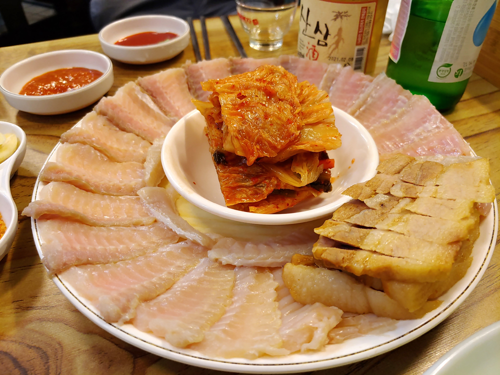 시간이 없어서... 홍어삼합을 주문했습니다.