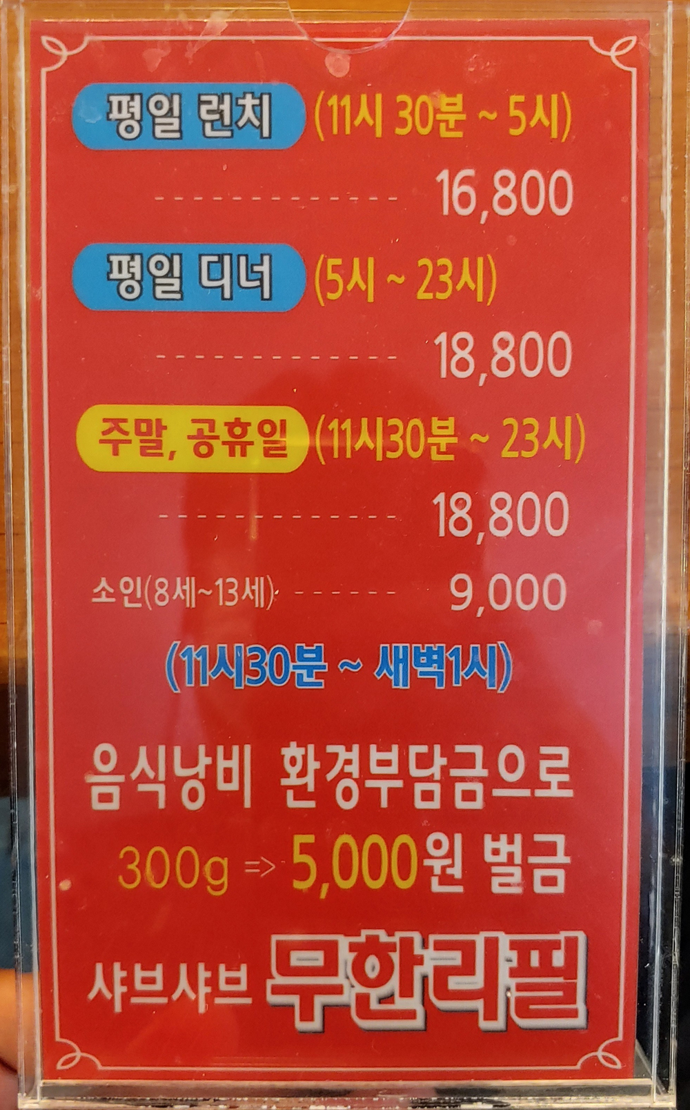 음식을 남길 경우 벌금이 있다고 하니 양껏 드시는 게 좋겠습니다.