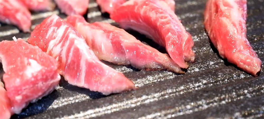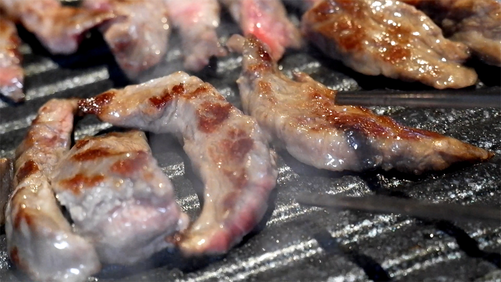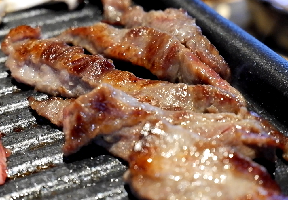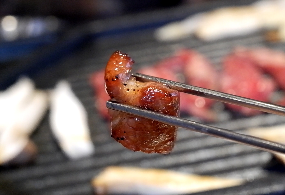 갈빗살은 결결이 끼어 있는 기름과 졸깃한 살코기의 맛입니다.