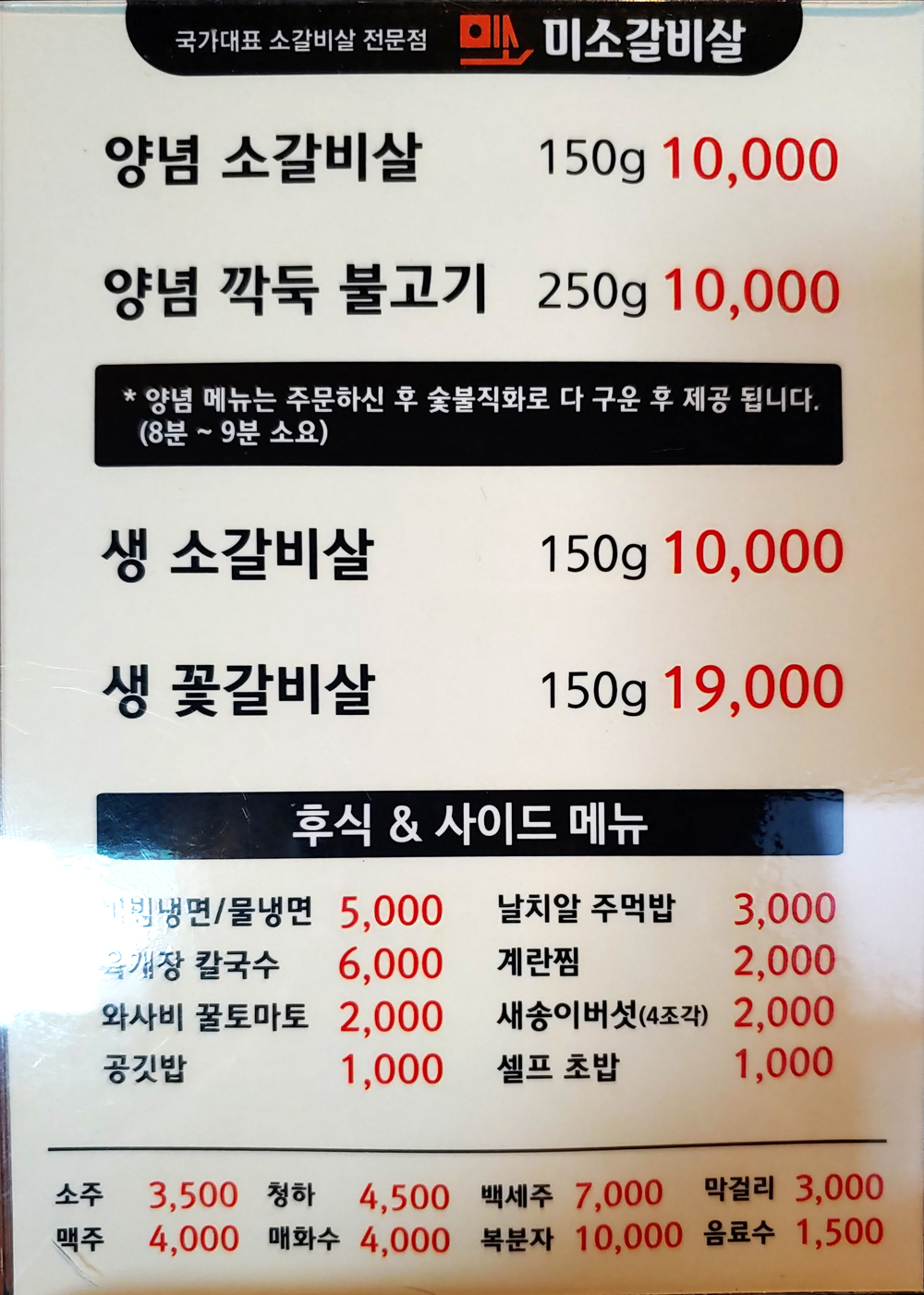 신정역 맛집 미소갈비살 신정본점의 메뉴는 단순합니다.