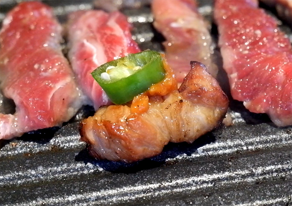 달달한 맛이기에 고추쌈 얹어 짠내와 매콤한 맛을 섞어주면 멋진 콜라보가 이루어지지요!