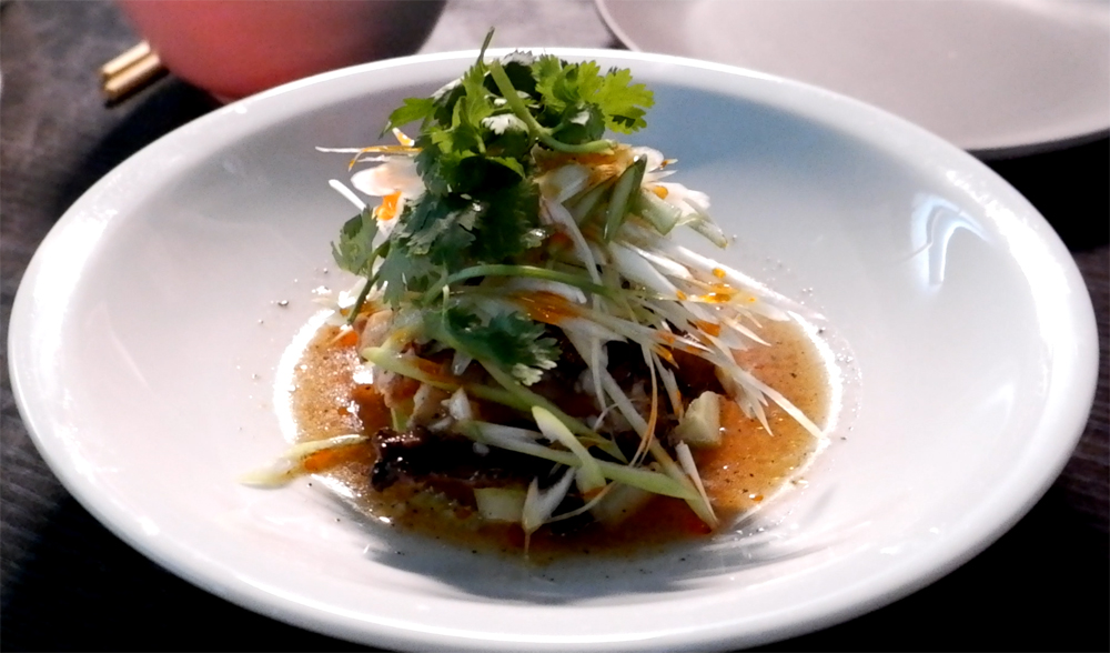 간장, 팔각, 생강소스를 저온진공조리(수비드) 방식으로 재해석한 차가운 닭고기냉채