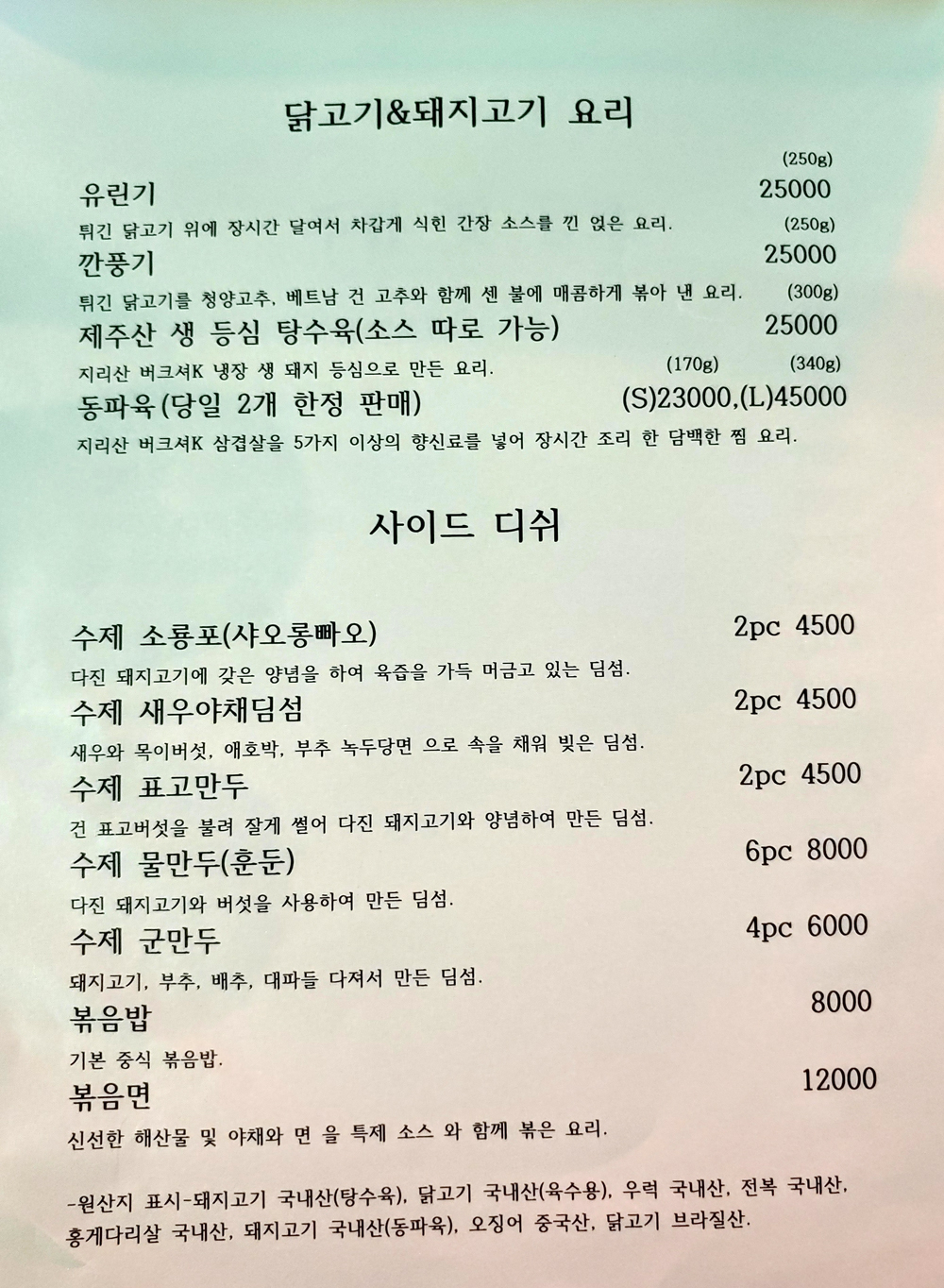 보시듯이 일상 우리가 시켜먹는 중국집 메뉴와는 다른 비주얼과 맛을 보여주고 있습니다.