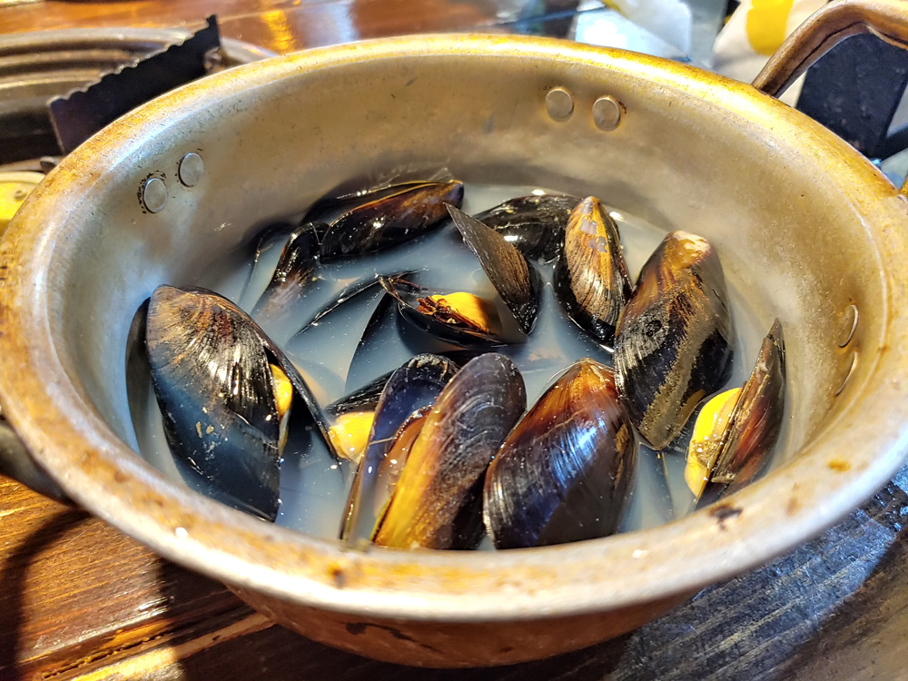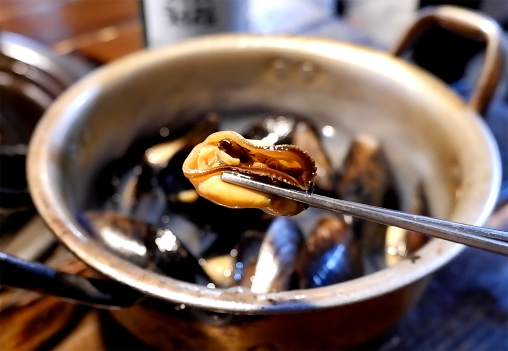 막간에 뜨겁고 시원~한 홍합탕 국물 마셔주고요~