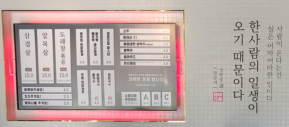 연신내삼겹살 한림돈가 연신내점의 메뉴는 이와 같습니다.