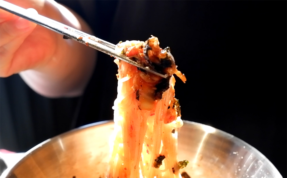 새콤달콤에 콱하고 쏘는 맛이 고기에 잘 섞입니다.