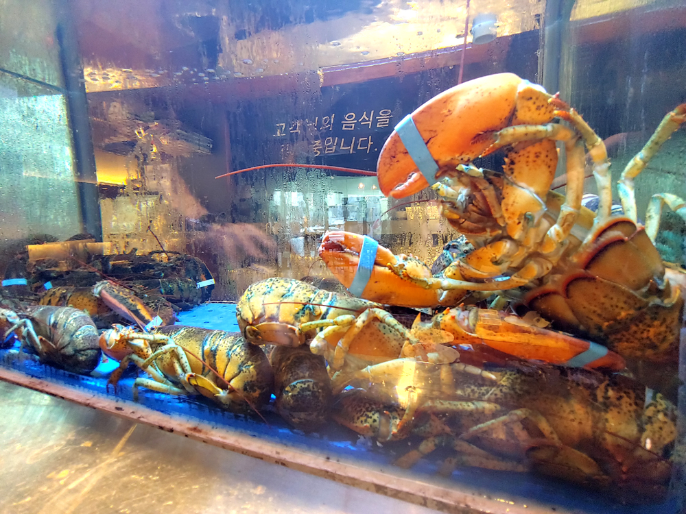 마포 술집 인기명 마포점엘 들어가니 바닷가재가 발을 흔들며 반기네요.