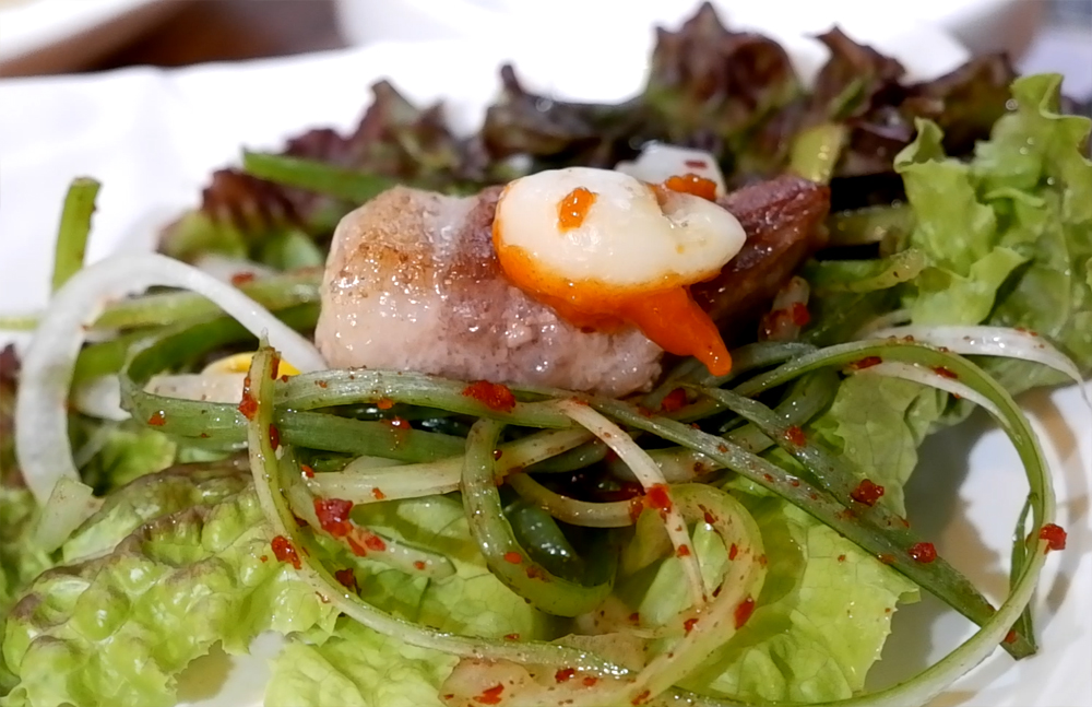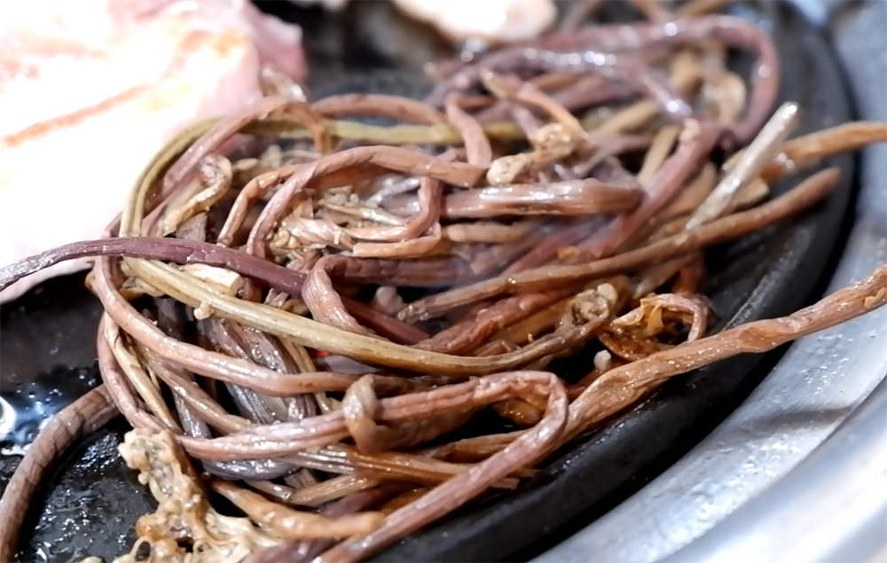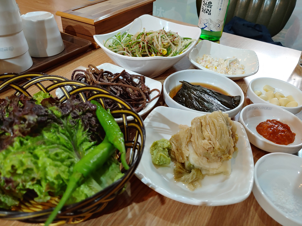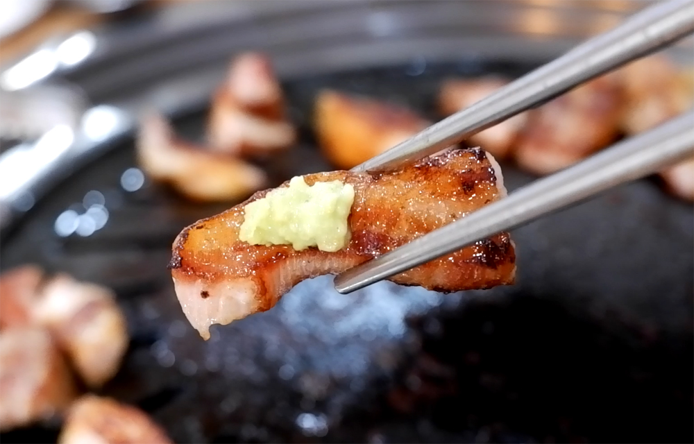 요즘 삼겹살 식당의 트렌드인 고사리와 고추냉이(와사비)가 있네요.