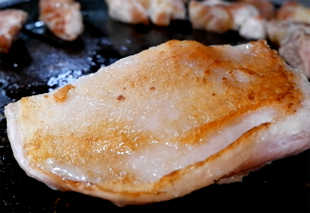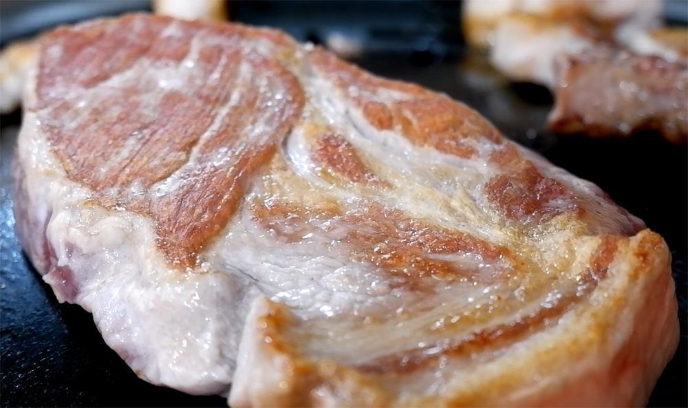 삼겹살을 거의 익히고 뒤를 잇기 위해 목살도 올려둡니다.