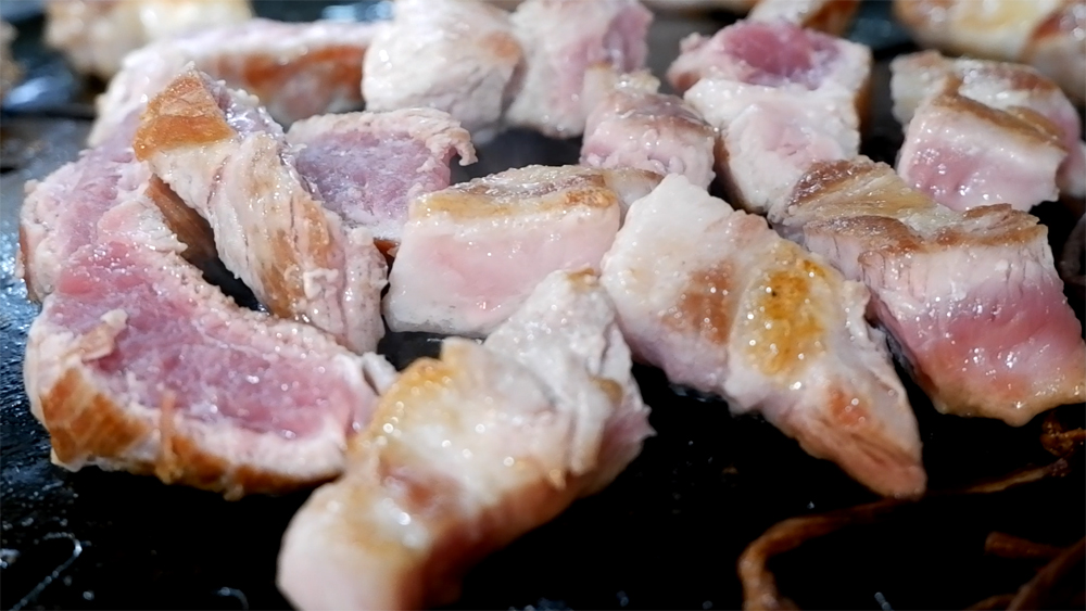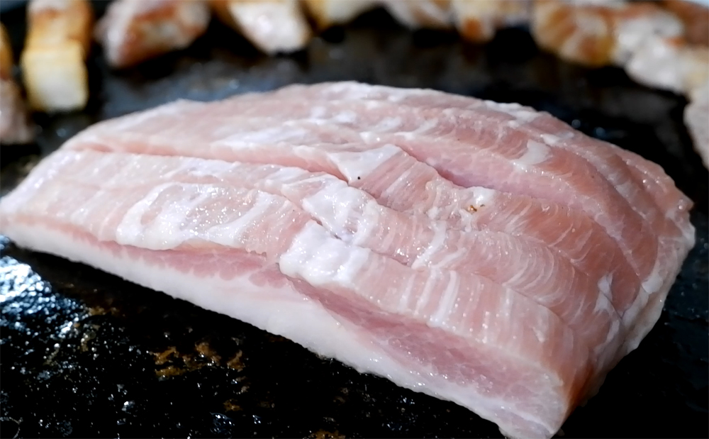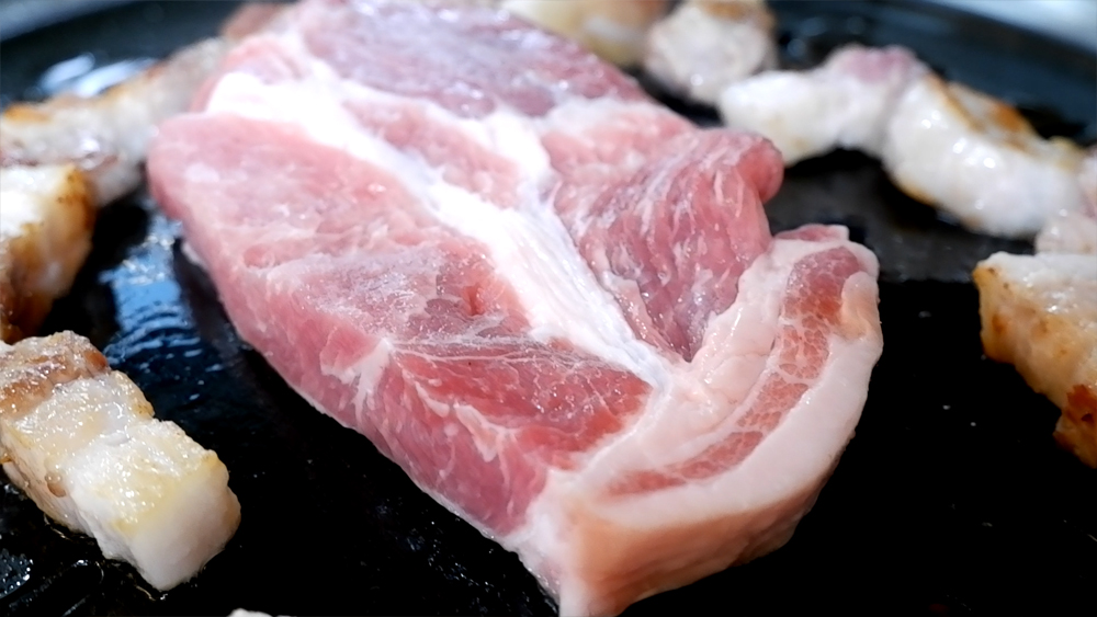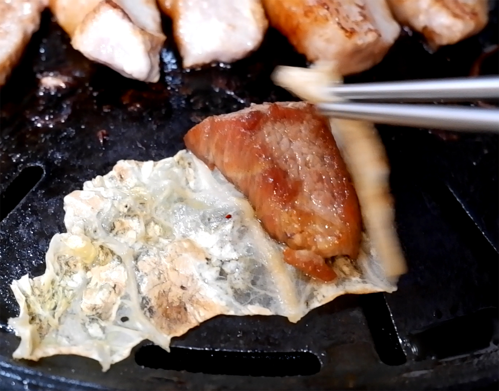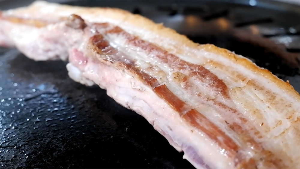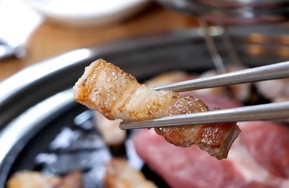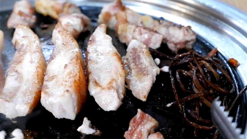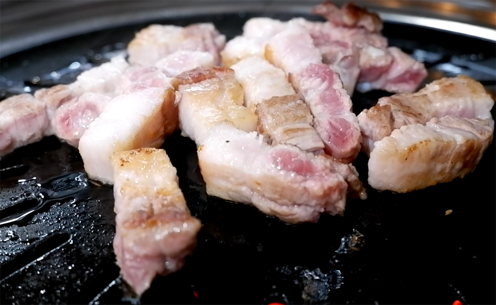 노릇노릇 기름진 천겹살이 익어가고 있습니다.