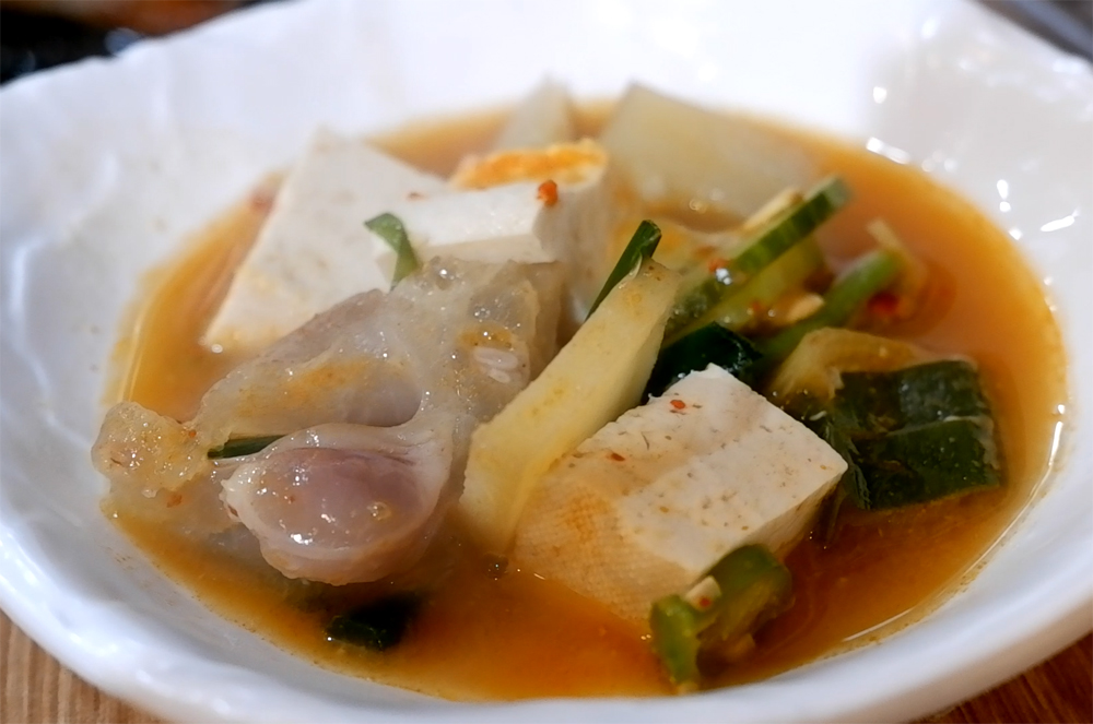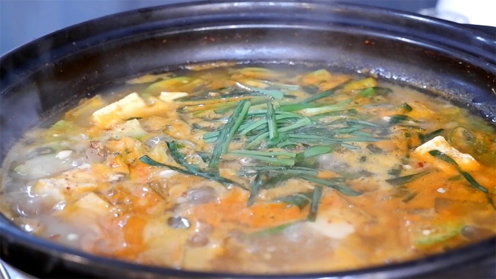 보시다시피 소 스지와 감자, 호박, 부추, 두부 등 다양한 건더기가 들어 있어