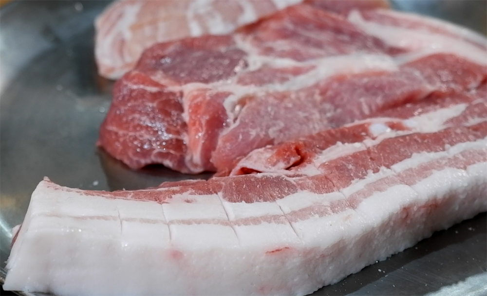 유심히 볼 것은 천겹살인데 이는 흔희 항정살로 알려진 부위입니다.