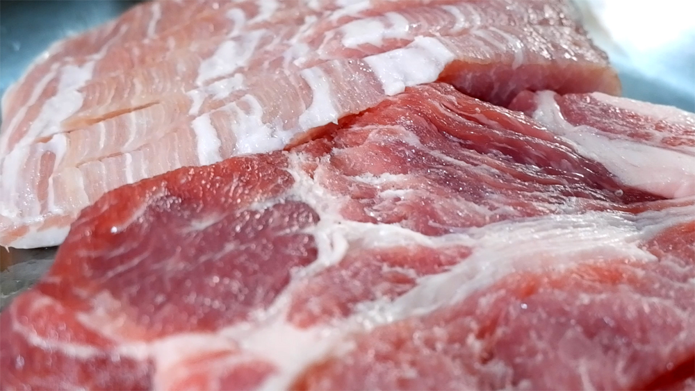 목살을 절단내어보니 삼겹살 못지않게 육색이 좋군요.