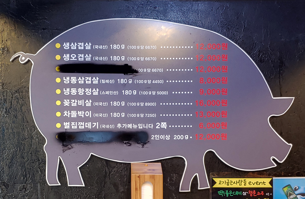 이미 오래 전부터 인기 부위로 보통은 삼겹살보다 조금은 비싸죠.