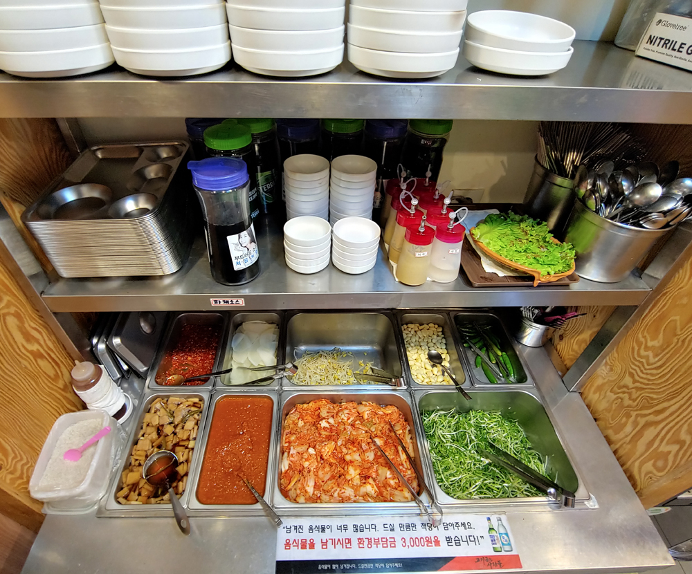 식당 중간에는 여러가지 반찬 등을 리필 할 수 있는 셀프바가 있습니다.