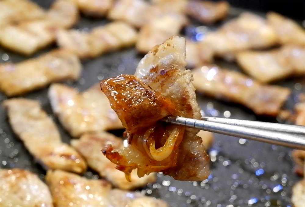 먹기 좋게 우삼겹이 노릇노릇하게 익었습니다.
