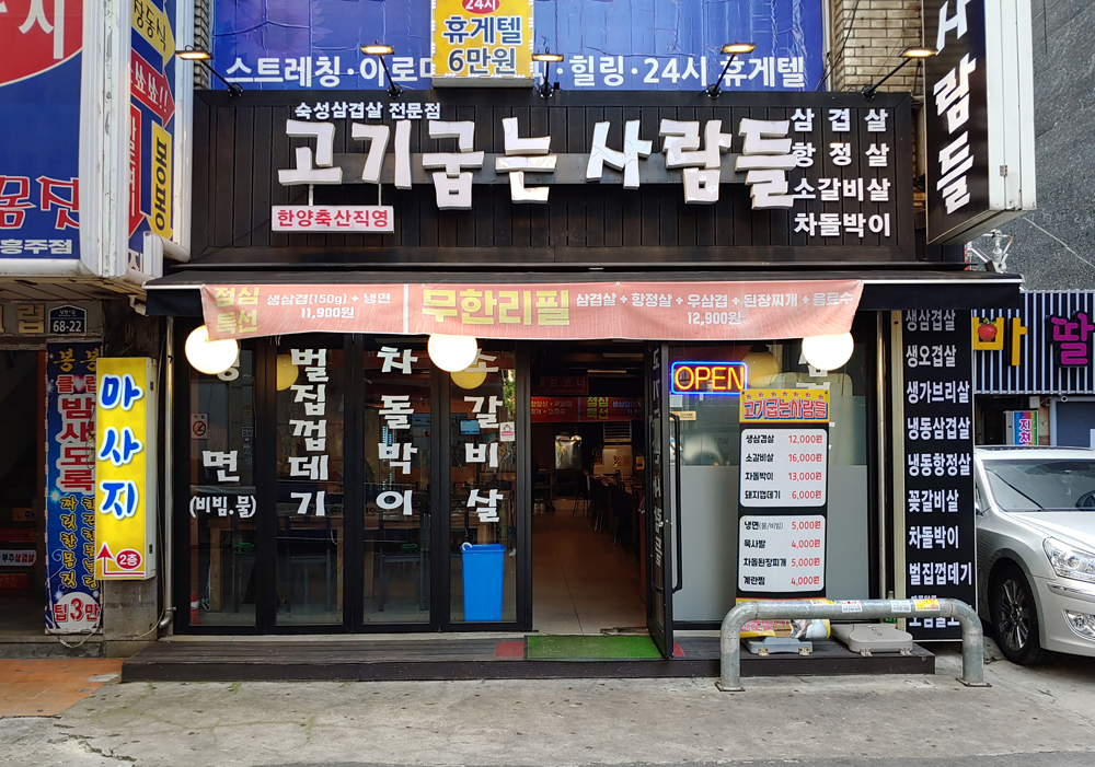 사당 삼겹살 고기굽는사람들 남현점은 사당역에서 가깝습니다.