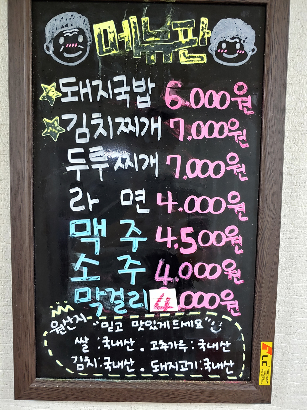 제일식당의... 아참 간판에 없기는 하지만 이 식당의 이름은 제일식당입니다.