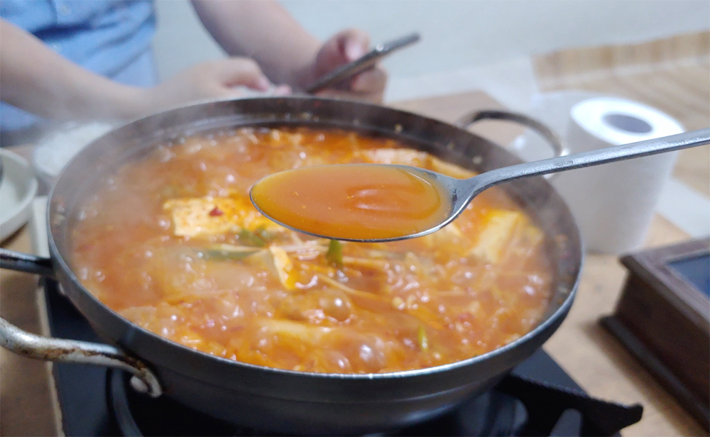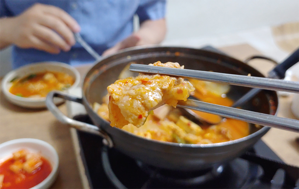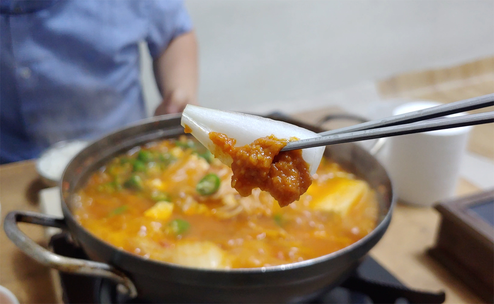 배고파서 서둘러 퍼먹다가는 점점 맛있어지는 그런 찌개 있잖아요.