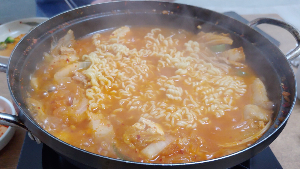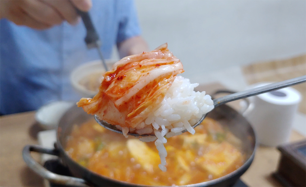 김치찌개 먹는데 뭐 많은 반찬이 필요하겠습니까.
