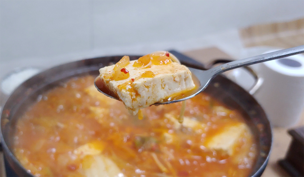 우리 찌개엔 두부가 빠질 수 없는 재료지요.