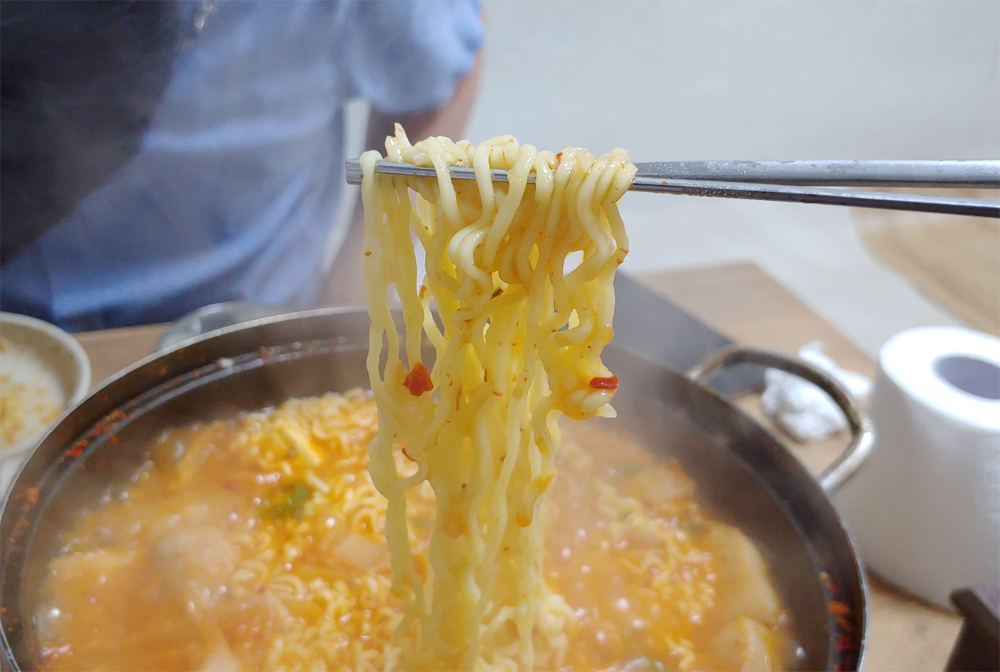 아직은 쫄깃함이 남아있는 라면을 한 젓가락!