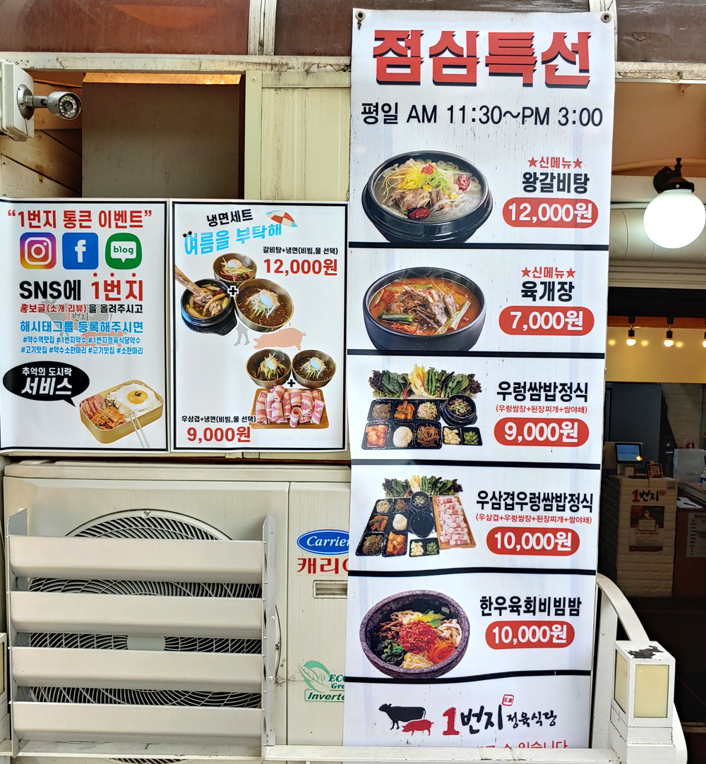 신당 맛집 1번지정육식당의 메뉴판을 참고하시면