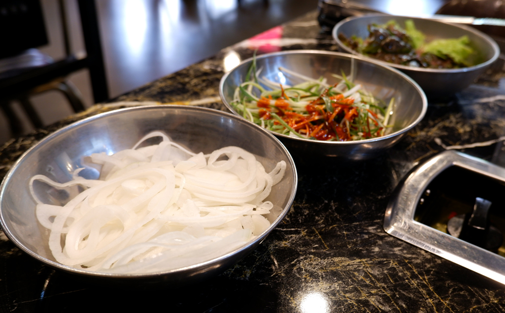 돌아보니 먼저 우삼겹으로 불판에 기름을 좀 발랐어야 하는 건데...