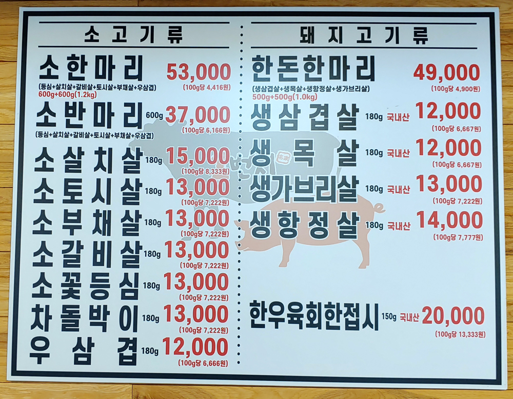 소한마리랑 돼지한마리 가격차가 별로 안 나네요.