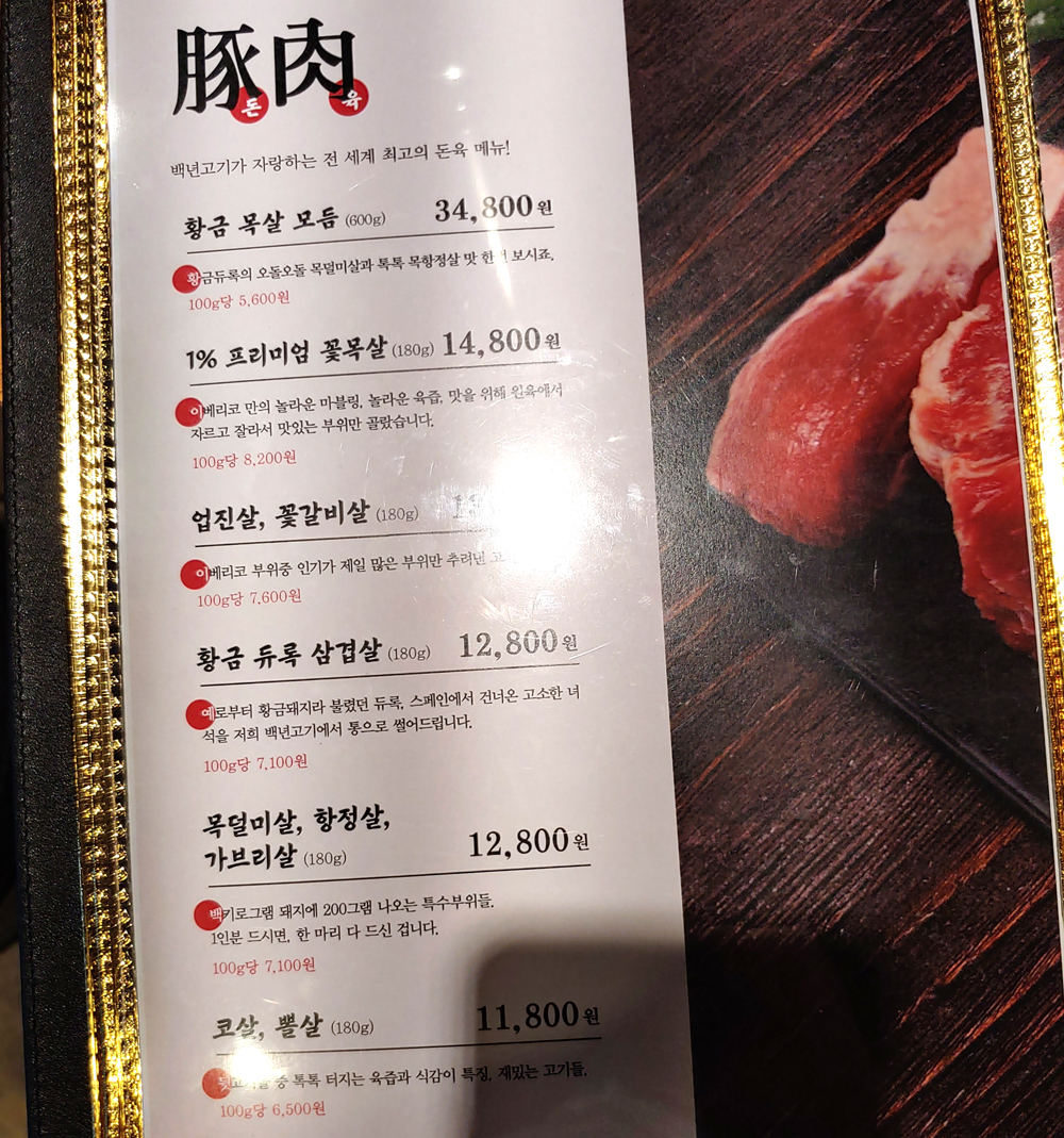 요것은 1% 이베리코 세트 600G 메뉴입니다.