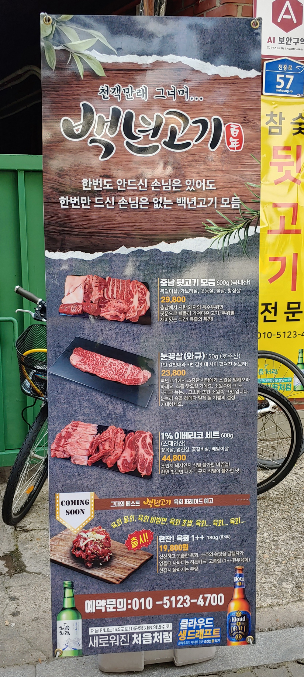 어제는 은평구 고기집 백년고기엘 갔습니다.
